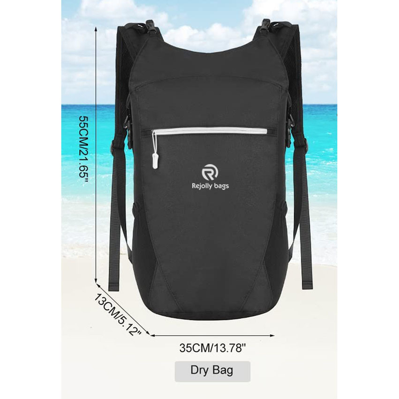 3. Lightweight & Large-Capacity: The waterproof bag is ultralight and foldable to be stored in a small storage bag and carried around when go an outing; 2 outer mesh pockets can hold an umbrella, water bottle, etc, the gear dry bag is 20L can keep cellphone, camera, towels, clothes, and daily necessities.