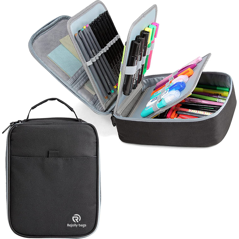 4. MULTIFUNTIONAL: The convenient padded top handle offers a comfortable way to carry this pencil case with many pens and objects in it. Two of the layers are detachable. You can adjust it according to your needs. Remove the layers if you need to bring calculators or make better use of the space. Inside there are three mesh pockets with zipper that facilitates finding and taking out objects.