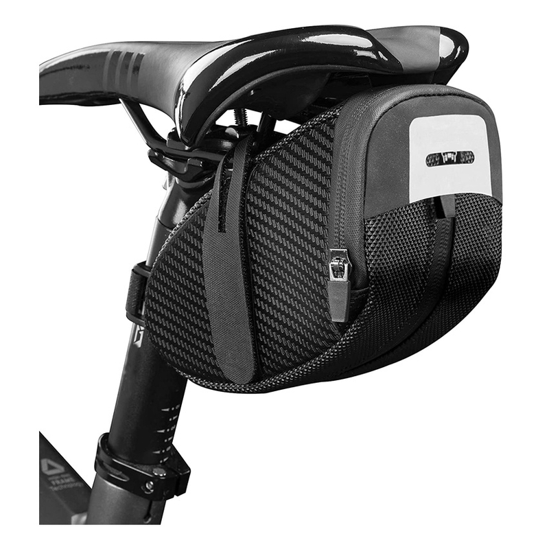 -The bike saddle bag is made of black carbon textured fabric and is water resistant, durable and lightweight. Mud and sewage can be cleaned by wiping easily. Waterproof Anti-slip zipper ensures no leaking.Bike saddle bag is the best for your bike.