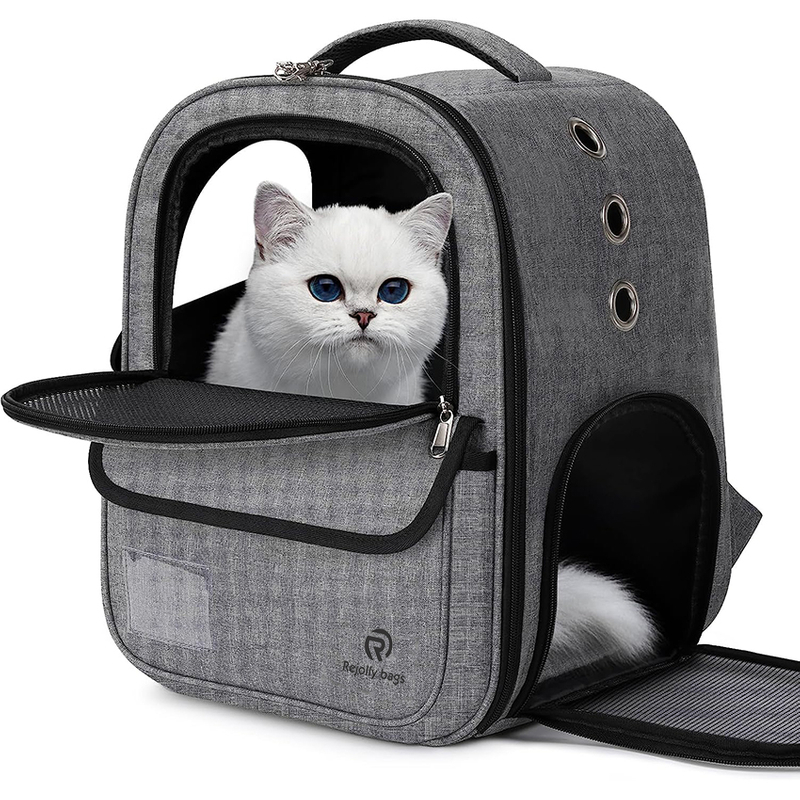 4. Adjustable wide shoulder straps and widened handles, and a breathable mat on the cat backpack back help reduce shoulder and back burden. This pet backpack is equipped with a chest buckle, which provides additional support for you. Very suitable for travel, cycling, walking, sightseeing, camping, and more outdoor activities.