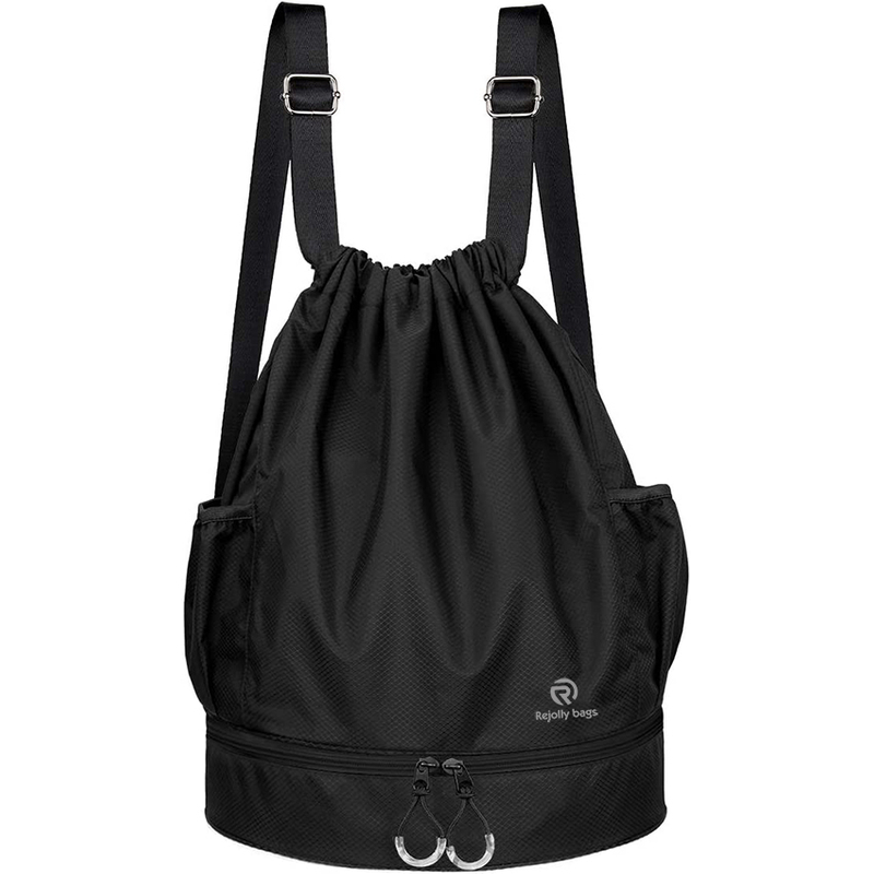3. This drawstring bag is a wonderful bag that features a clear plastic compartment in the main compartment, which allows you to carry your clean and dirty( dry and wet) items in a same bag but different compartment, great for swimming suits, changed clothes or other non-water dripping wet items.