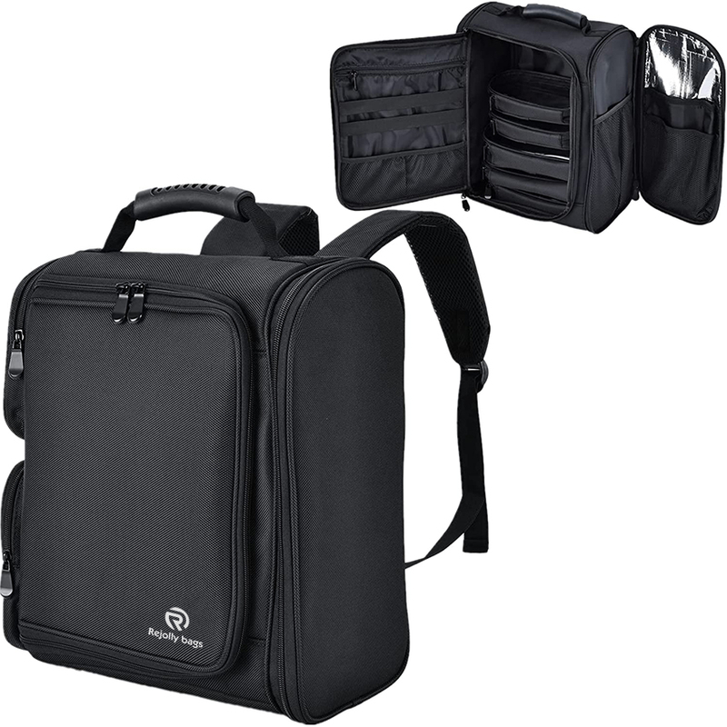 1. Travel Makeup Case: Designed for carry-on travel size: 37 CM * 33CM * 18M, Yueieoun makeup backpack is made for artists who have lots of mobile jobs, all your makeup, barber, nail tech supplies can be well-organized in the large side pockets and 5 makeup storage bag sets for toiletries, labor saving and breathable shoulder straps relieve the stress of the shoulder and the extra back padding helps fix your backpack on your luggage.