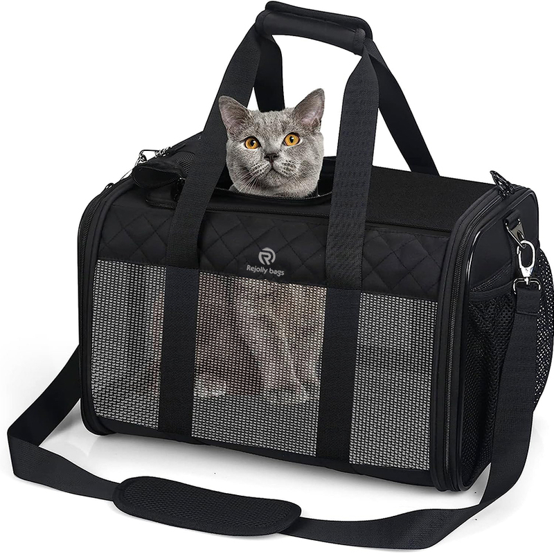 4. This carrier for small to medium dogs and cats features a comfortable removable padding to keep your pet comfortable and easy to clean, a zipper button lock to prevent pets from opening or grabbing the zipper, and an inner safety strap to prevent Your pet escapes. Side storage pockets can be used to store pet treats and toys.