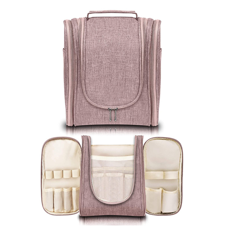 -Our Hanging Toiletry & Makeup Bag has a unique design with 16 vertical leakproof pockets, 2 large zipped pockets, and a tall mesh section. Our design maximizes the storage space while the metal hook makes it easy to hang anywhere.