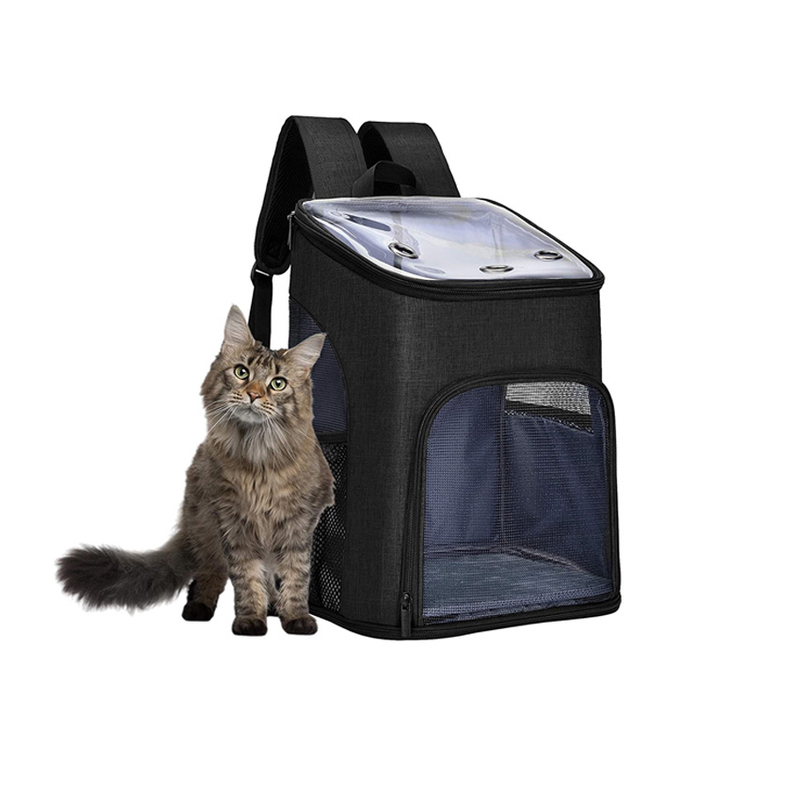 -The Cat Backpack Carrier has two entrances which make it possible for your pet to stick his head out. You can feed your dog or play with him without putting the Cat Backpack Carrier down.