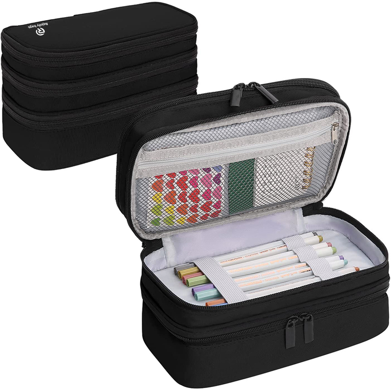 3. Large Capacity with 3 Layers : Pencil holder bag comes with 3 storage compartments for your office supplies and school supplies to organize. The pencil holder bag comes with mesh pouches for small items, pen holder pockets design make it more easy to keep tidy.