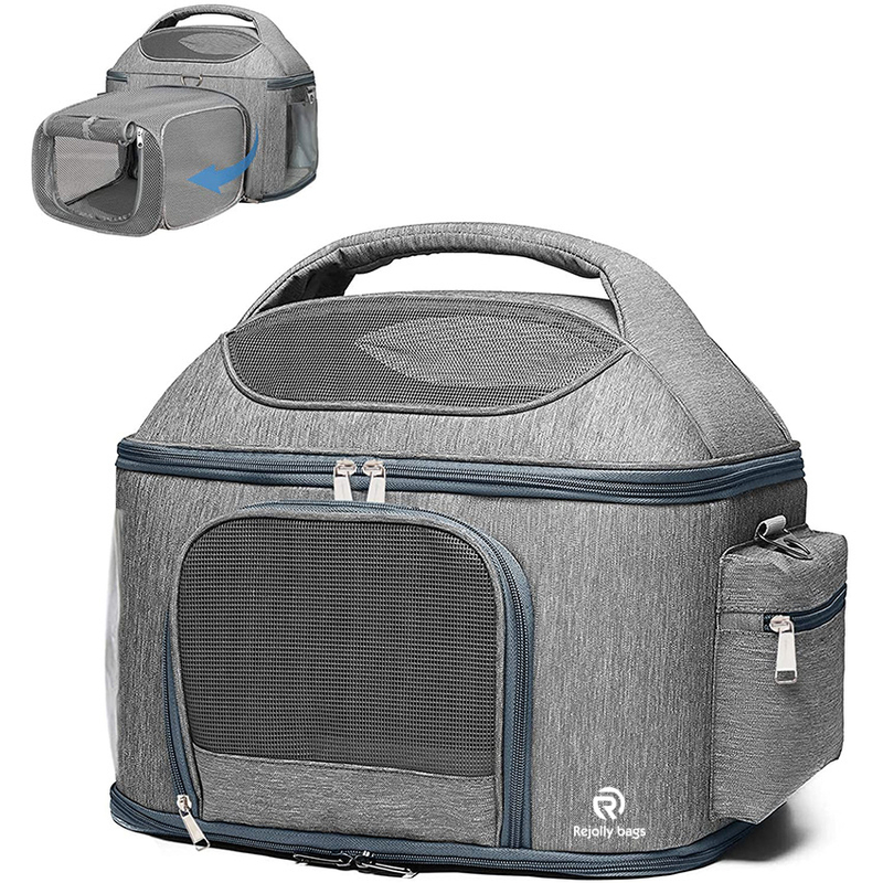 -Expandable Pet Bag: Our Cat Soft-Sided Carriers can be easily expanded on one side to provide more moving space for pets. Pet travel carrier normal size :16.5"Lx 11.8"Wx 14"H. Expandable size:24.3" Lx 16.5"W x 14"H .Max load of 20lbs. Maximum pet size: 16" Lx11" W x 11" H.*(Please measure your pet's size before purchase and weight,allowing enough space for your pet.)