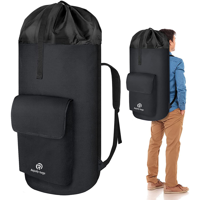 2. ULTRA LARGE CAPACITY: 115L capacity. The size of our laundry bag is 39.5''H X 14.96''L, which can easily hold 3 batches of standard-sized laundry or load weights up to 60 lb maximally. The front pocket (16.34"H X 11.81"L ) of the laundry backpack can provide storage space for laundry detergent and other accessories. Ideal for travel, university dormitories or family use.