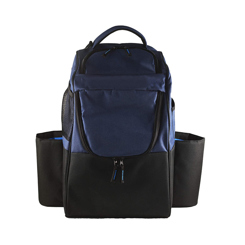 -Plus it includes extra features like two water bottle holders, a putter compartment for easy disc access, a mini-marker pocket, an accessories pouch, a zippered side pocket for things like your car keys or scoring pencil, and an easy carry handle on top.