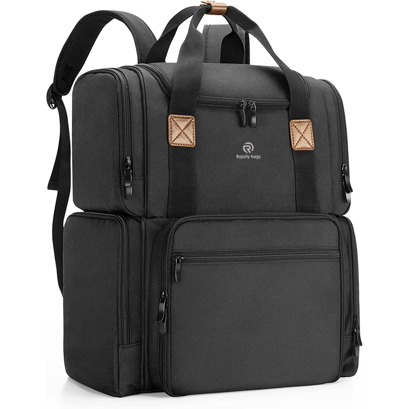 4. OTHER SECTIONS - 4 side sections with versatile pockets can provide spacious space for holding makeup brushes, lipsticks, etc. (The side transparent area can be wiped out). The back well-padded pocket is large enough to keep an iPad.