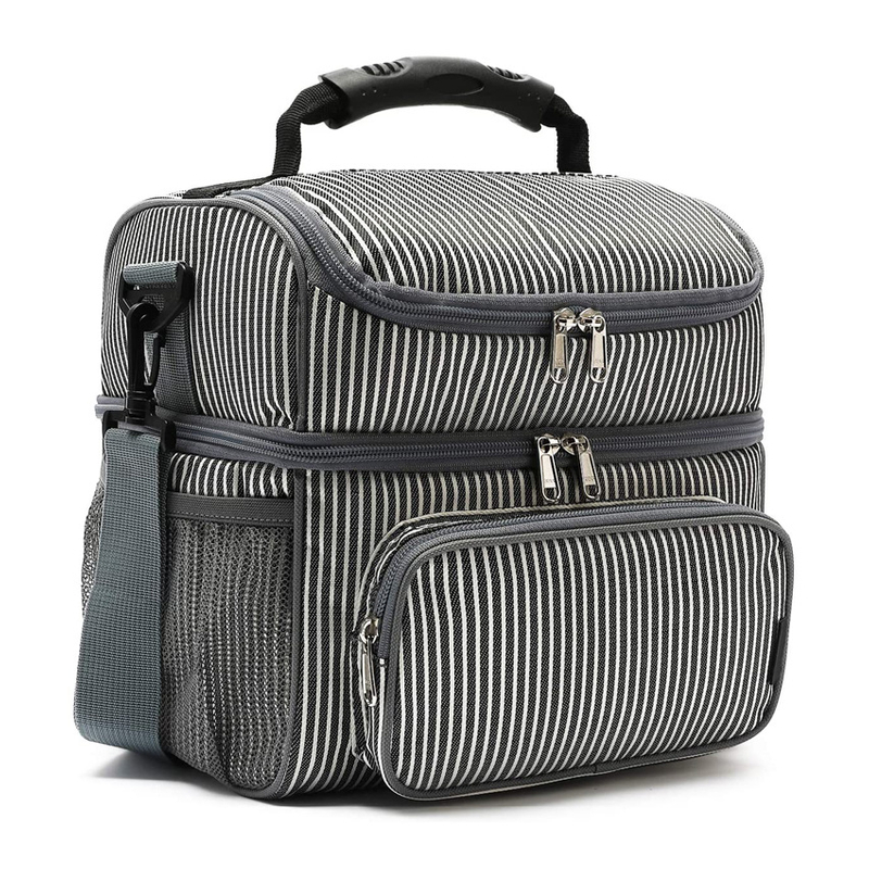 -The great thermal hard lunch kit is crafted, easy to carry with comfort-grip handle and removable and detachable shoulder strap.You can carry the bag by the handles when you use the top handle, and also it could be used as a crossbody bag or a shoulder bag when you use the strap.Its durable and easy to pull zippers will never trouble you.