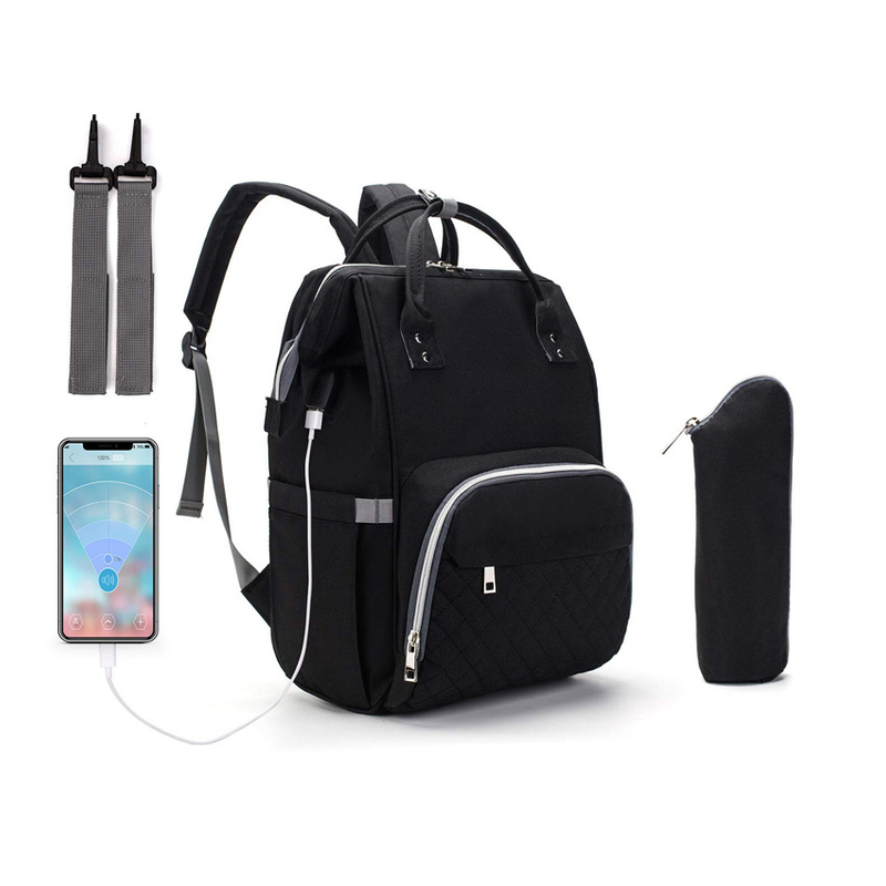 -The diaper bag is with stroller straps in order that you can hang it up the handle of the stroller.