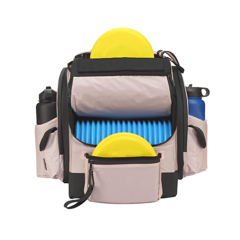 -Our round golf backpacks are very durable and lightweight. They don't add any extra weight. The Disc Golf Bag is made of waterproof, tear and scratch resistant nylon fabric that provides protection in all environmental conditions.