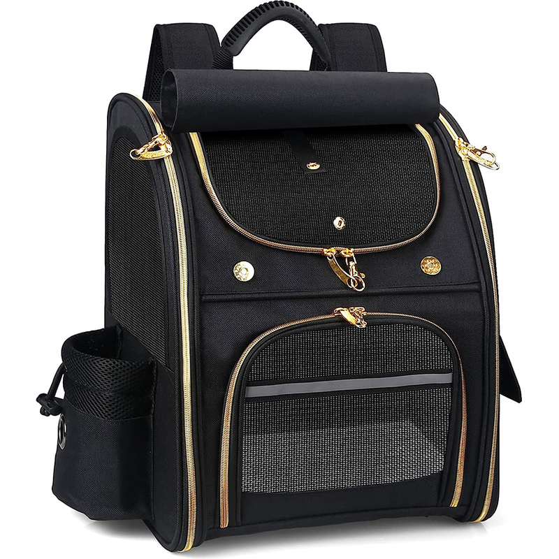 1. Spacious and Convenient --The size of the pet backpack is 11.8" x 10.4" x 15.7" (L x W x H), for Dogs and Cats up to 25 lbs.It's portable,easy to store.hiking, traveling, walk parkor,send a gift.