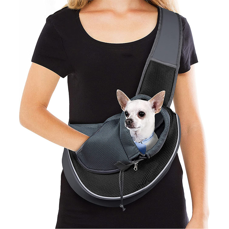 -Comfort and Breathable:dog carrier sling made from High-quality PU leather, breathable mesh fabric, comfortable sponge shoulder strap, the thickened bottom can prevent pets from scratching, and bring a more comfortable travel experience for pets.