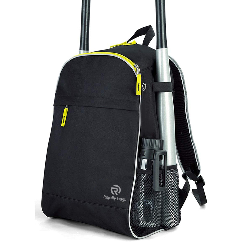 1. Youth Baseball Backpack is designed 10%-20% larger than regular youth baseball bags in the market, consisting of a spacious main compartment, an upper valuables pocket, a front pocket and 2 side pockets to store your baseball equipment like 2 baseball bats, a helmet, a glove, 2 bottles, and other essentials.