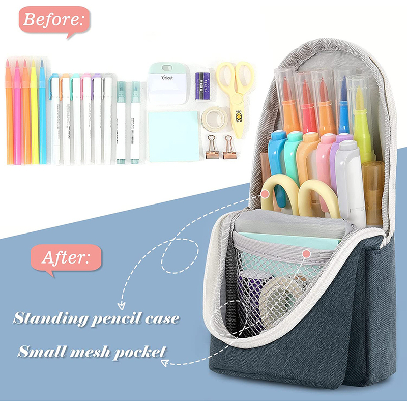 1. Functional Standing Design - Quality canvas with smooth zipper and strong magnet easily turns the pencil case into standing pencil holder, helps to grab the right pencil/marker when sketching/writing without having to dig around.