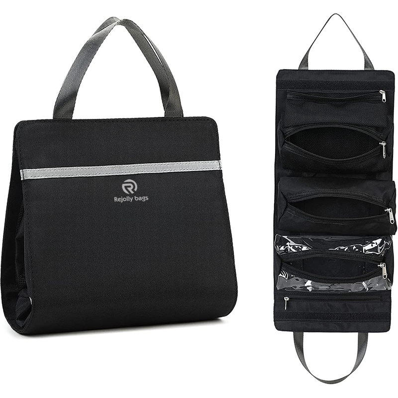 1. Toiletry travel bag - Attractive design with 3 seperate bags: a mesh bag & a waterproof plastic bag & a cloth bag. Whole size: 18.89 * 8.66 inches (L*W). Each can be used as cosmetic bag to fit brushes, makeup, toothbrush/paste, lipsticks, holding little travel bottles.