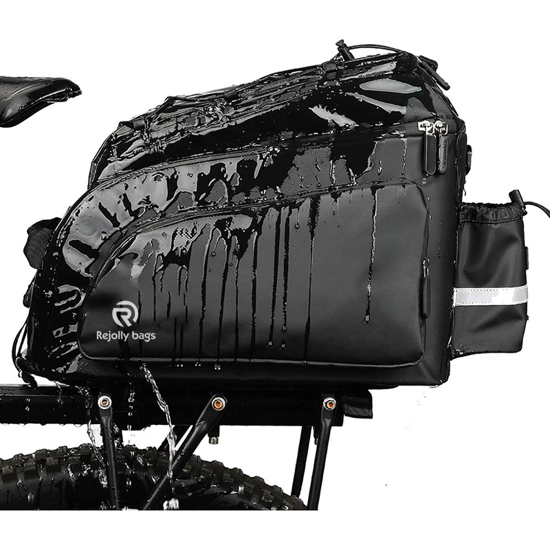 1. Waterproof Function: Made of 1000D polyster material with waterproof PVC layer on both sides, this bike pannier is super durable and fully waterproof, as well as anti-tear, wear resistant and heat resisting, protecting your items perfectly.