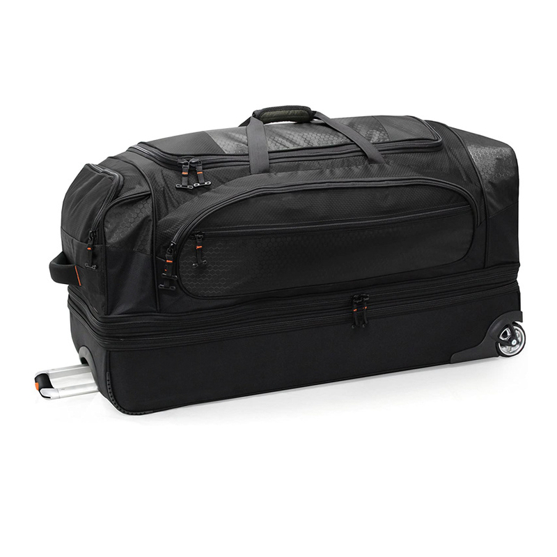 -Oversized main compartment with top access and zippered panel separates the lower drop bottom compartment. Bottom expansion zipper allows for 20% more packing capacity.